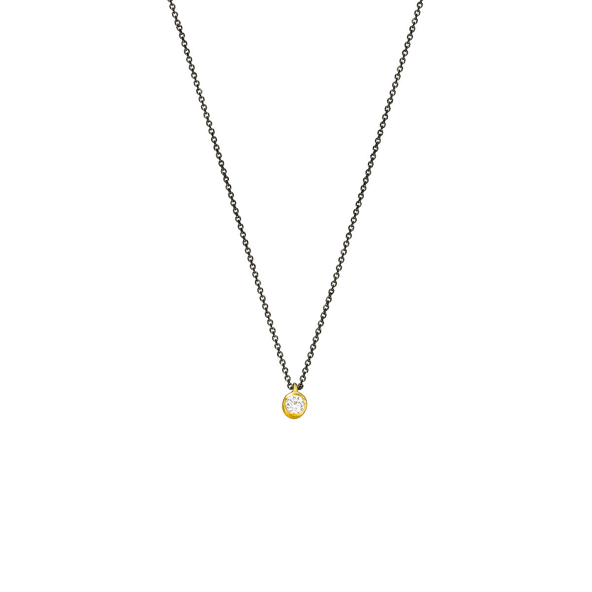 Μοτίφ σε κίτρινο χρυσό 14Κ με ζιργκόν. Διάσταση μοτίφ 0,4cm ,με αλυσίδα ασημένια 925 επιροδιωμένη μήκους 40-45